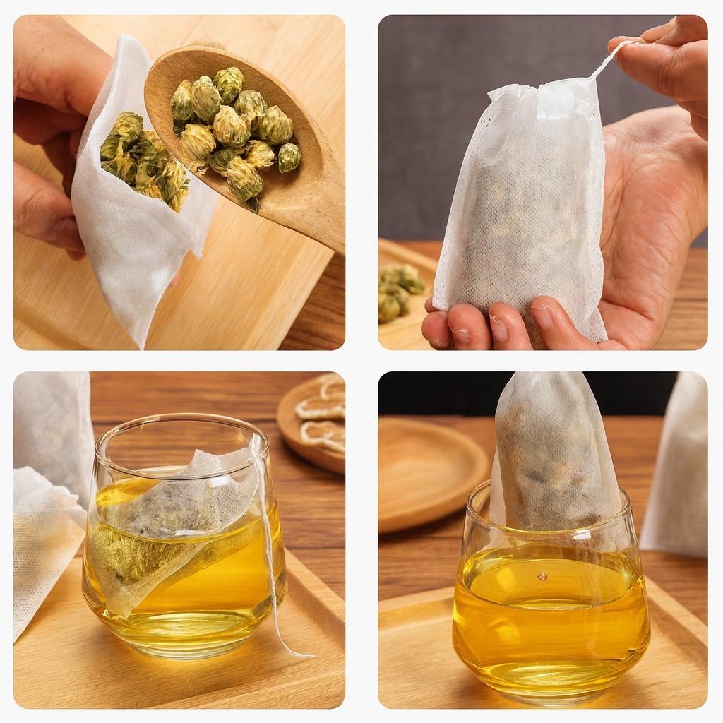 • Small white drawstring filter bags for loose tea leaves or herbs