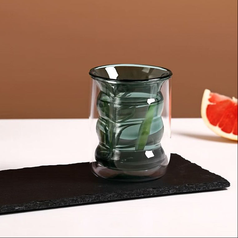 Double Wall Waved Glass Cup - 200ml Dark Green